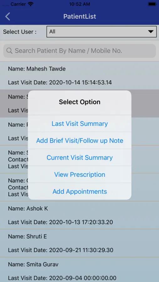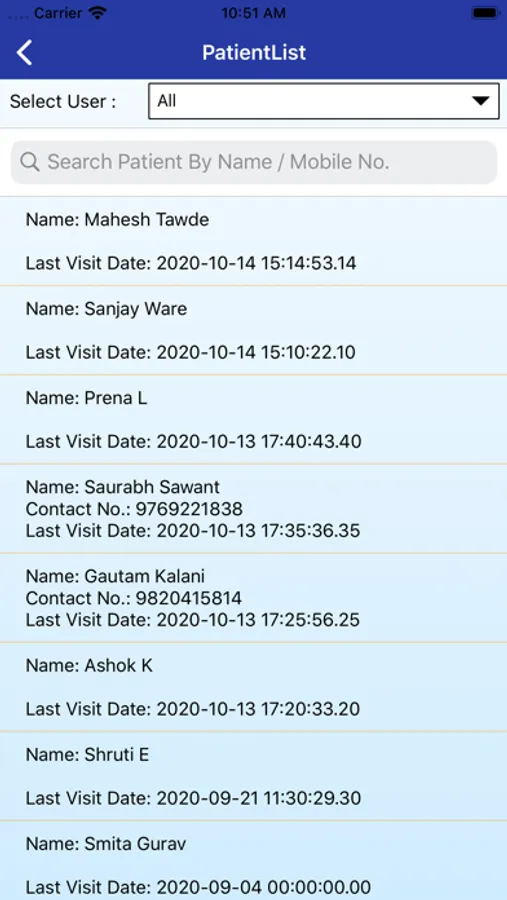 5. Search patient list by first name / last name and/or mobile number