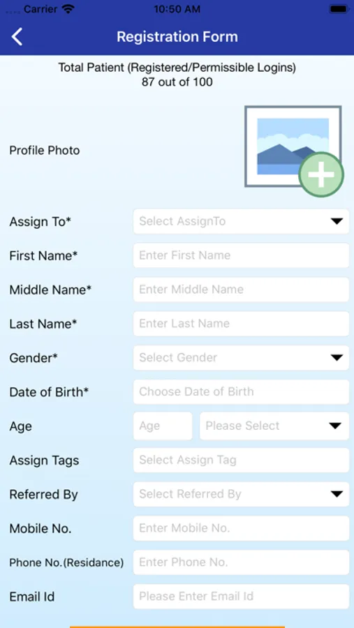 2. Fields for Patient registration