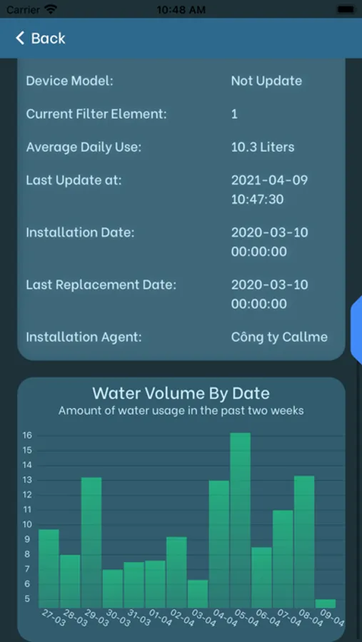 Ứng dụng cung cấp dịch vụ cho khách hàng sử dụng máy lọc nước có thể giám sát việc sử dụng nước qua đồng hồ kiểm soát thông minh cùng với các dịch vụ chăm sóc khách hàng đến từ Callme.