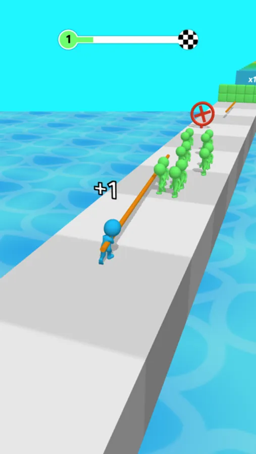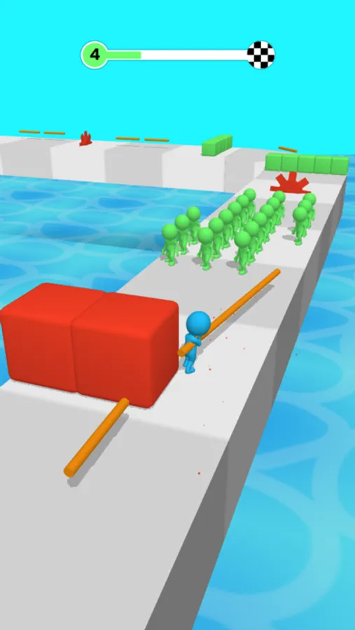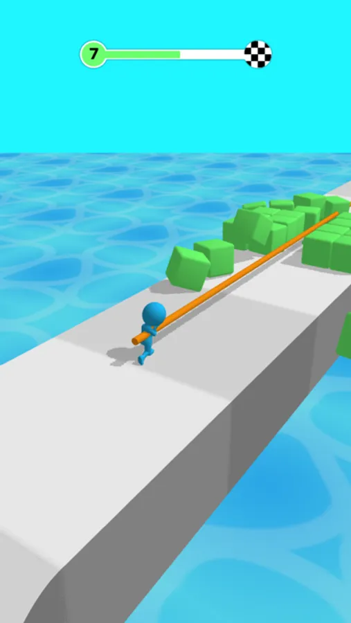 Pick up the sticks and stack them to get the longest stick and push everything on your way to the finish line!