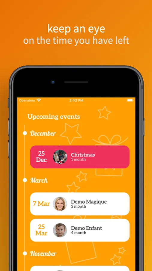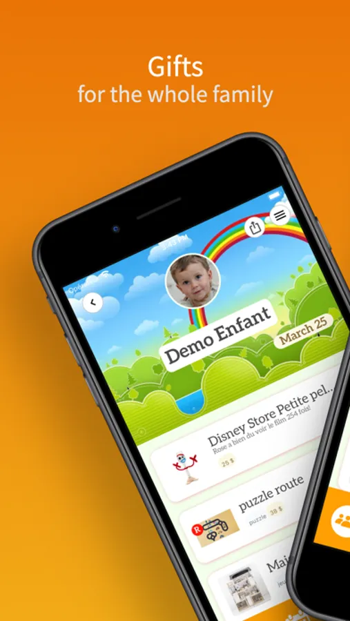 - Birthday: Creating a list for your child's wish list in one gesture thanks to our sparkling application