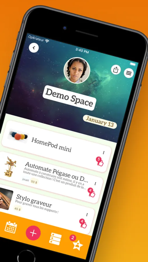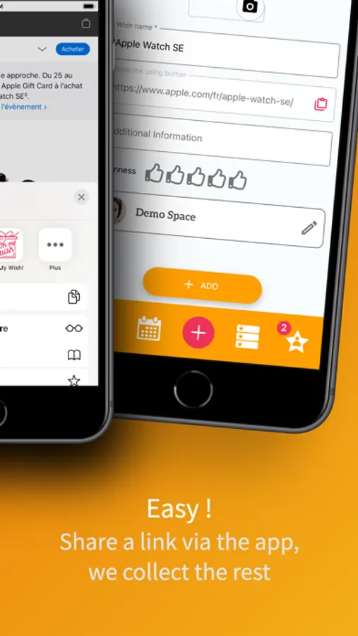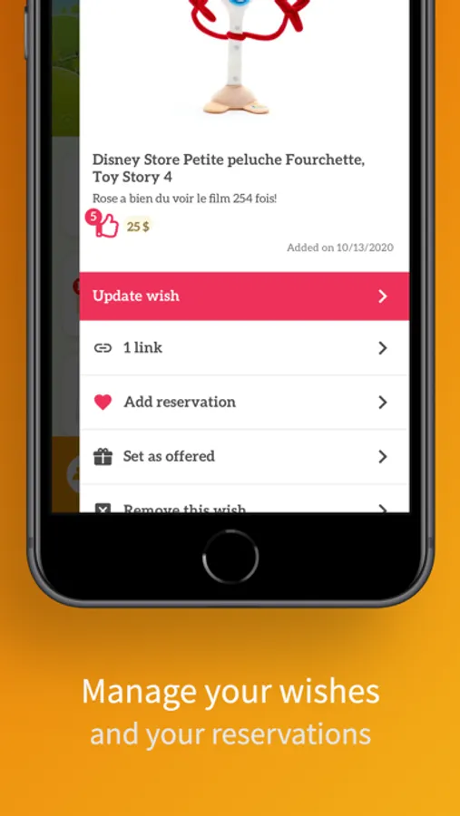 - Create your wishes from a simple link (shared via the application), we take care of retrieving the information for you (name, image, ...).