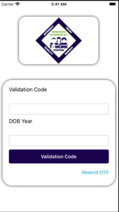 T-Work Staffing’s app is easy to set up. Once you have downloaded and opened the app, fill in the required fields and submit. Your request will go to us for verification. *