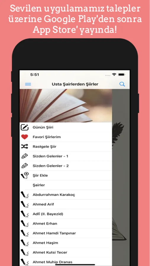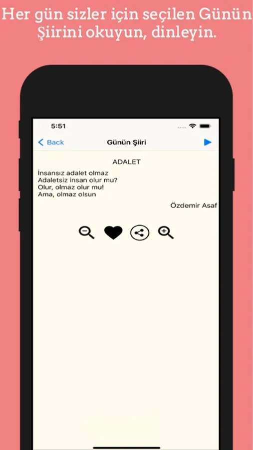 Şiir severlerin cebinde mutlaka olması gereken bir uygulama. İnternete gerek olmadan en ünlü şairlerin en güzel şiirleri bu uygulamada.