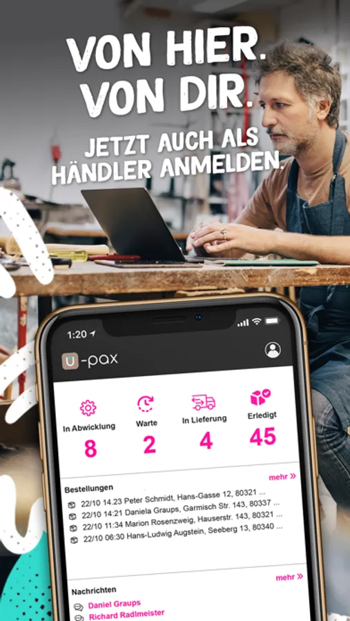 Gewinne neue Kunden bei u-pax. Mit Deinem kostenlosen Onlineshop ist Dein Angebot bei allen Kunden in Deiner Umgebung gut sichtbar.