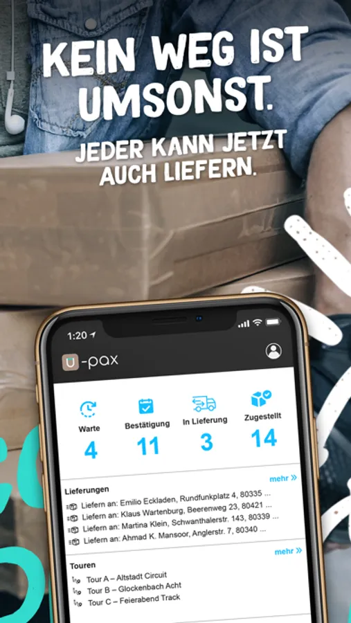 Lange Lieferzeiten und verpasste Zustellungen sind mit u-pax Vergangenheit. Schließlich stehst Du mit dem Lieferanten direkt in Verbindung und kannst tracken wo er gerade ist.