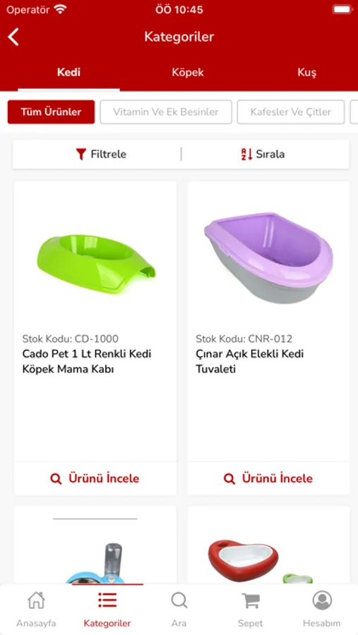 * Ürün kategorilerinde filtreleme yapabilirsiniz