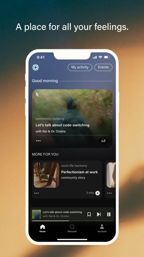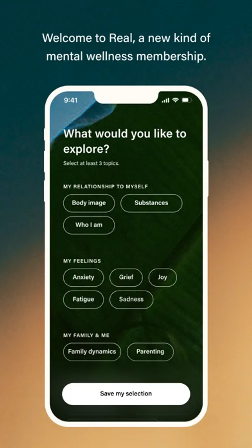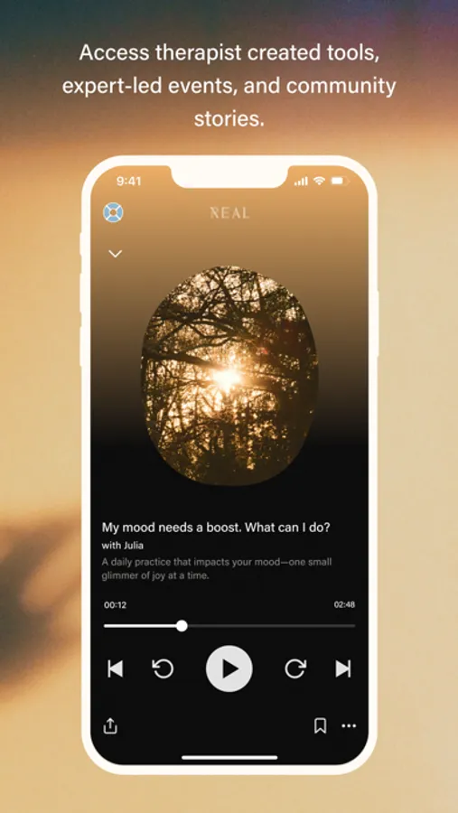 We believe taking care of your mental health is an essential part of being human. Real offers on-demand, therapist-created tools and conversations alongside engaging community stories to support you along your mental wellness journey.