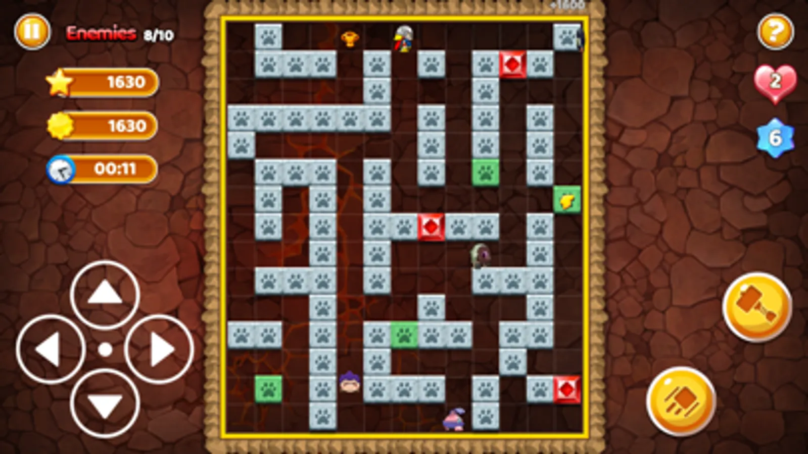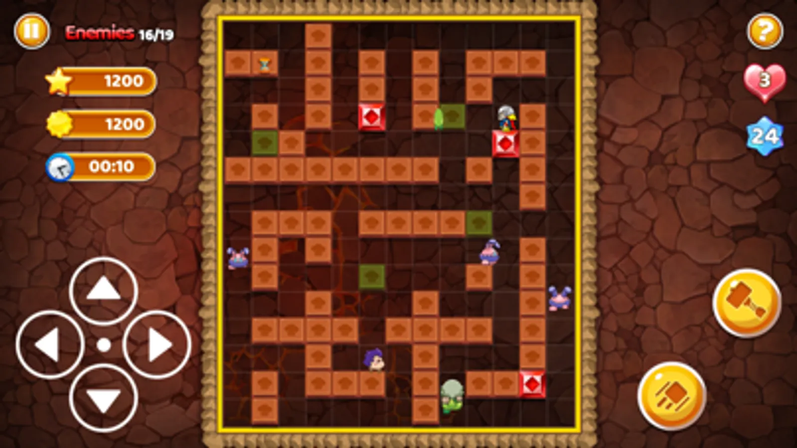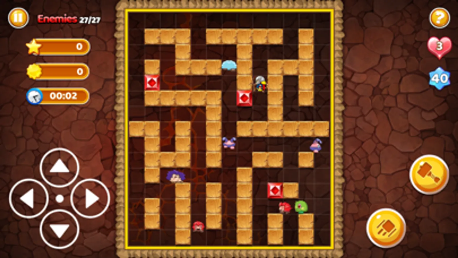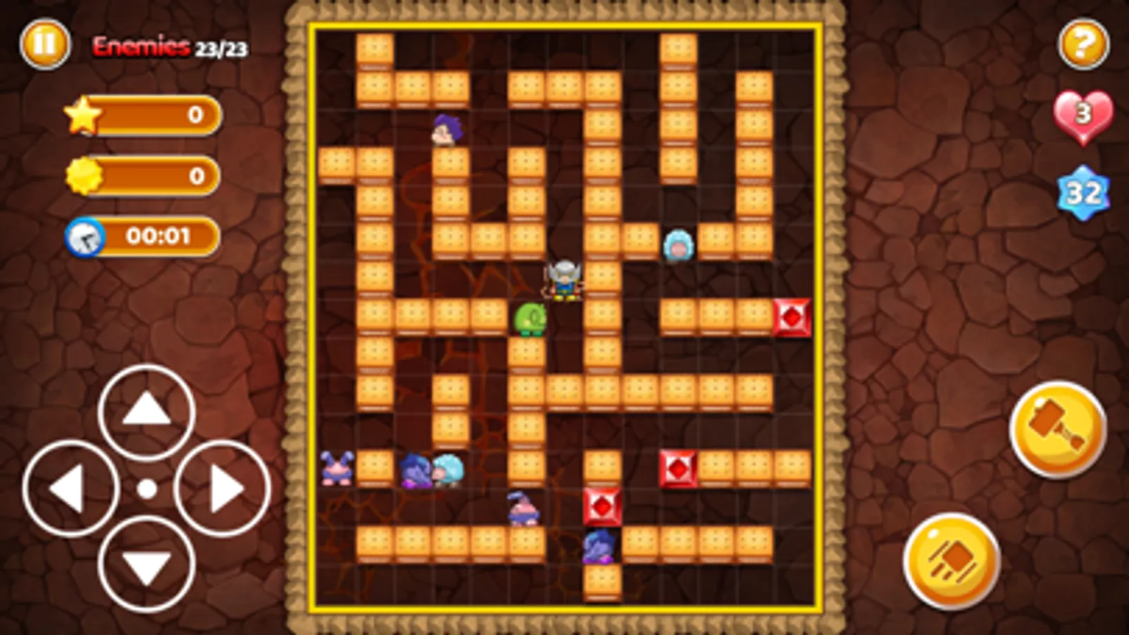 Pen Hammer man - Maze Go is a classic maze game. The goal of the game is to destroy every enemies on every level that is scattered across the board by doing either one of the three things; sliding a block to crush them, destroying the blocks that contain unhatched enemies, or stun them at the wall and run over them. If the player can survive two minutes without losing a life, all active enemies will become aggy enemies. they will move faster and smash everything on road they move. Will you be able to complete all 48 levels with increasing difficulty? Good luck and have fun!