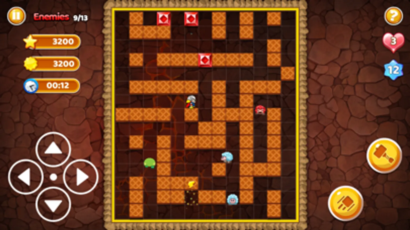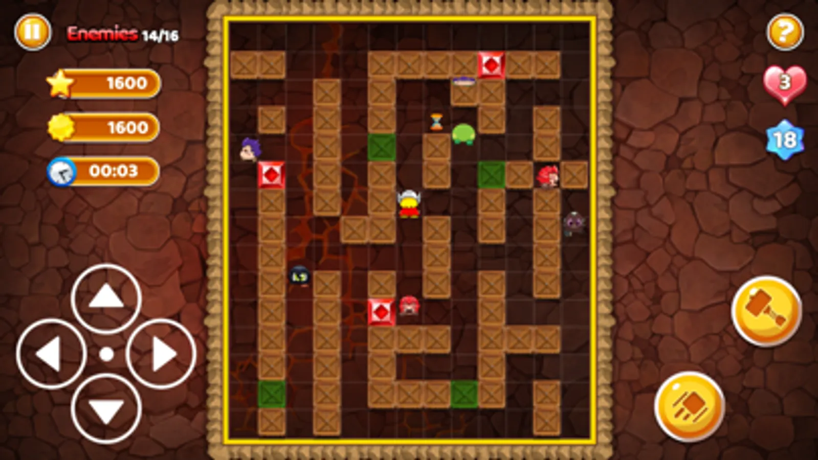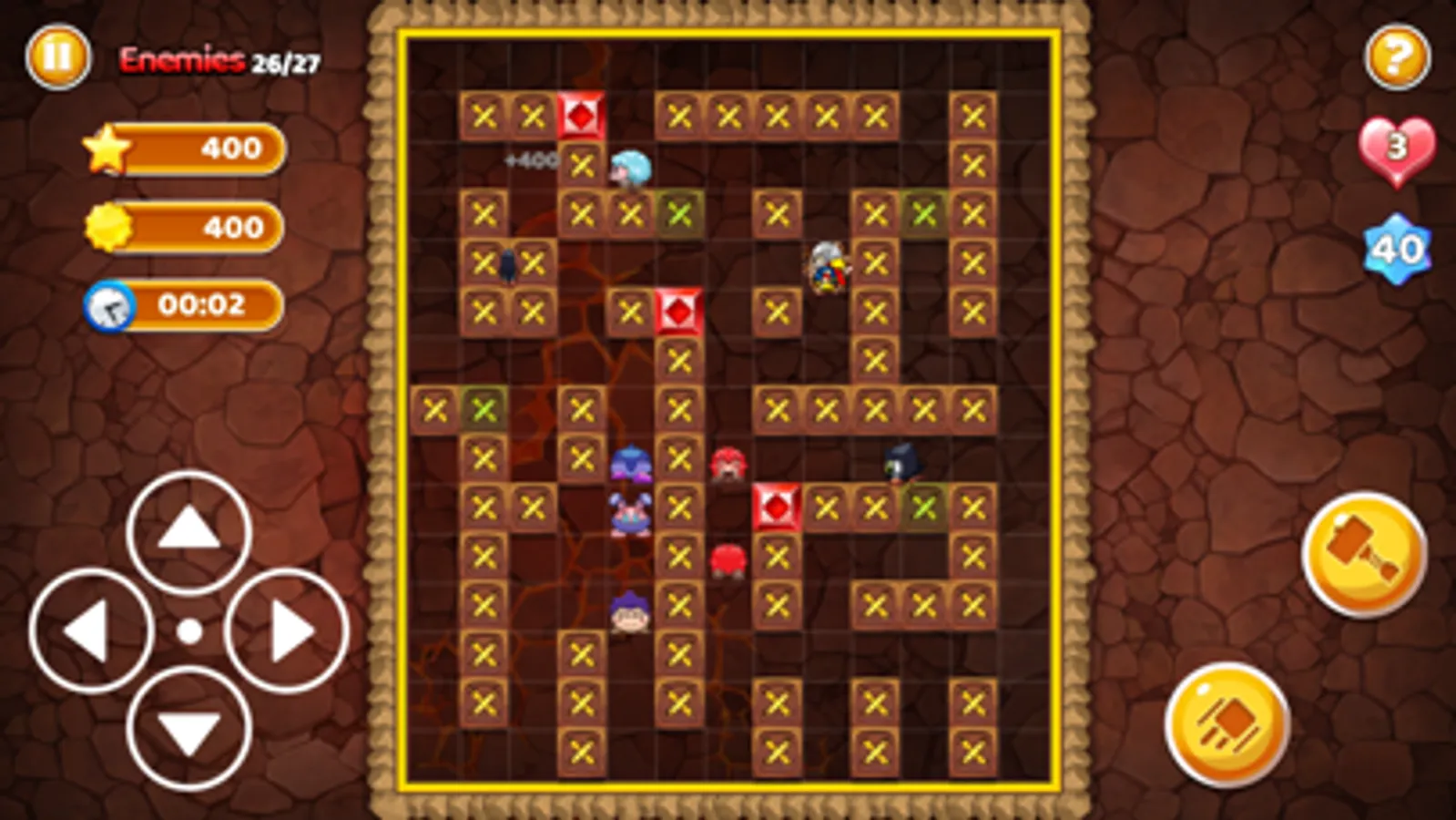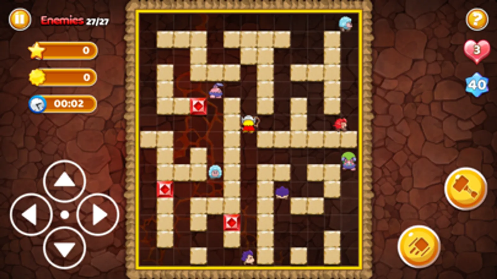 Pen Hammer man - Maze Go is a classic maze game. The goal of the game is to destroy every enemies on every level that is scattered across the board by doing either one of the three things; sliding a block to crush them, destroying the blocks that contain unhatched enemies, or stun them at the wall and run over them. If the player can survive two minutes without losing a life, all active enemies will become aggy enemies. they will move faster and smash everything on road they move. Will you be able to complete all 48 levels with increasing difficulty? Good luck and have fun!