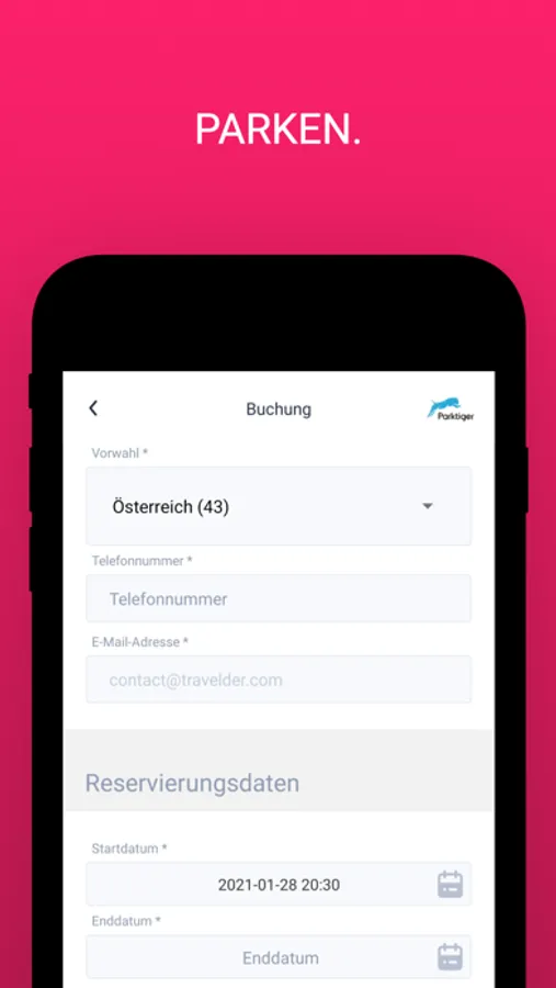 Parktiger bietet Ihnen günstige Parkplätze am Flughafen Wien oder in der Wiener City. Mit der Parktiger App musst Du Dich nur einmalig registrieren und kannst Deinen Parkplatz danach jeder Zeit mit ein paar Klicks buchen ohne Deine Daten nochmals eingeben zu müssen. Zudem gibt Dir die App einen guten Überblick über alle kommenden und vergangenen Buchungen.
