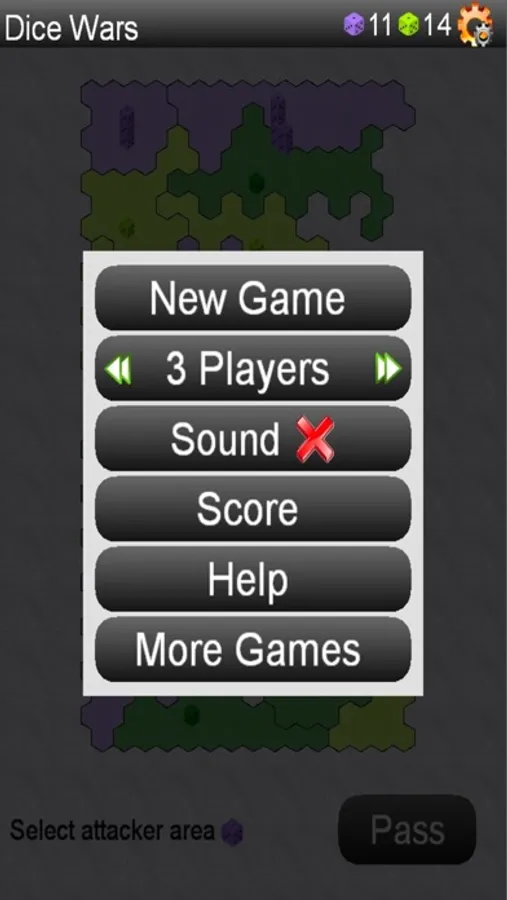 territories. Dices added randomly. To pass the move to the next player, click "Pass" button. Turn ends automatically when there is no moves left.
