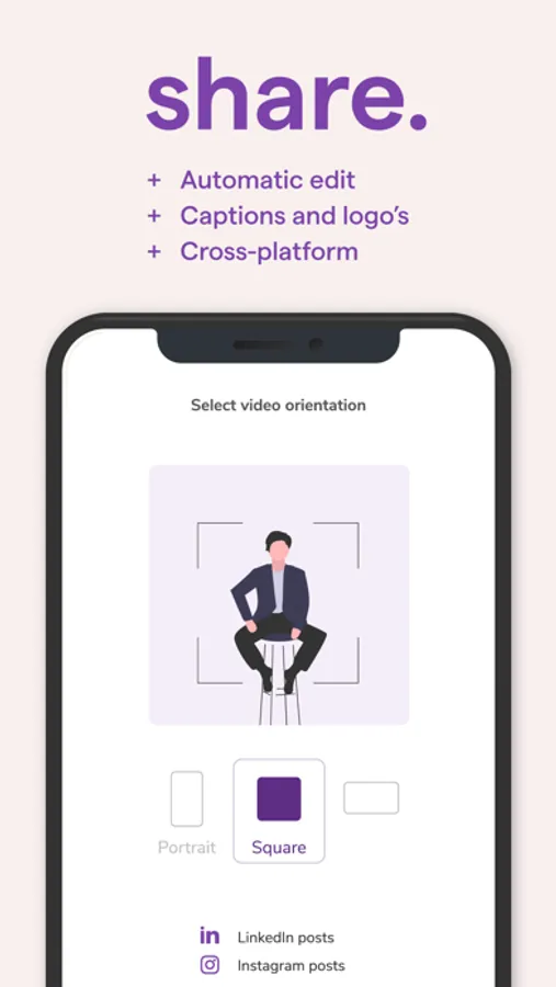 • Cross-platform - Share your video directly to all social accounts in your ratio of choice.