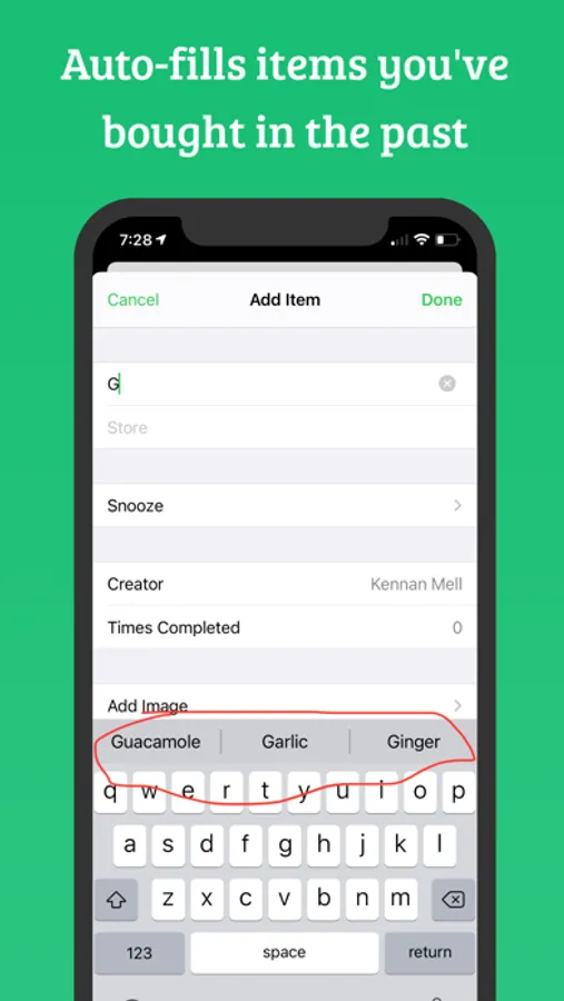 * Smart shopping assistant with predictive auto-fill of items, and auto-assignment of stores to items based on your history