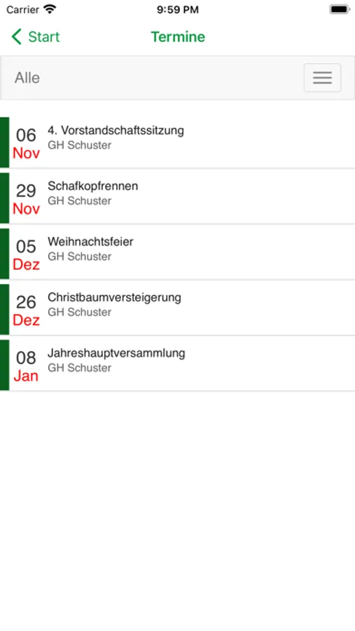 Spontane Verabredung nach dem Training? Verlegung einer Übungsstunde ins Freie? Es ist leicht, alle mit der App zu benachrichtigen.