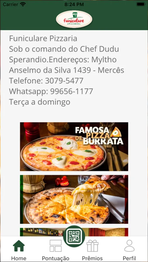 Com o aplicativo Funiculare Pizzaria você demonstra sua fidelidade pelo estabelecimento acumulando pontos e trocando por prêmios e vantagens através da leitura do Qr Code oferecido pela ao comprar no estabelecimento!