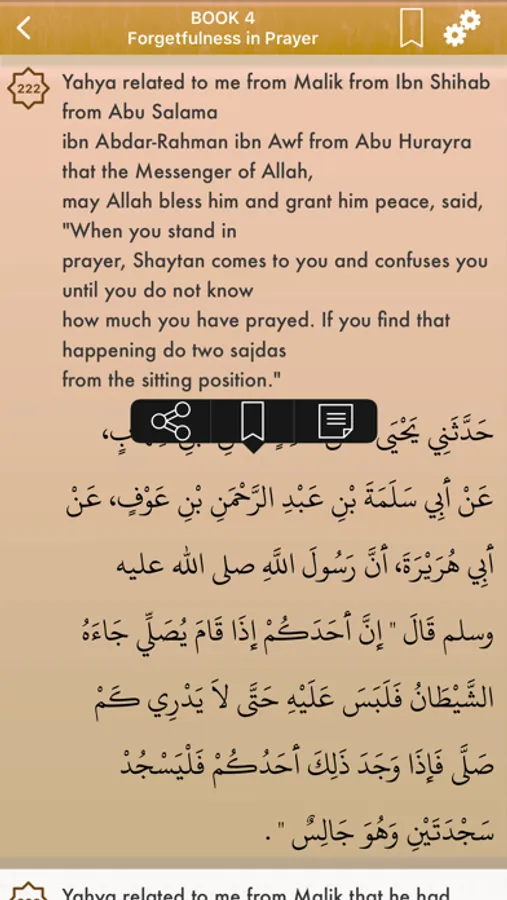 This application gives you the ability to read the 61 books of the "Al Muwatta" by Imam Malik on your Iphone / Ipad / Ipod Touch.