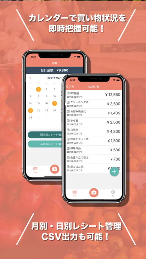 日々の買い物レシートをそのまま文字データ化して管理できます!