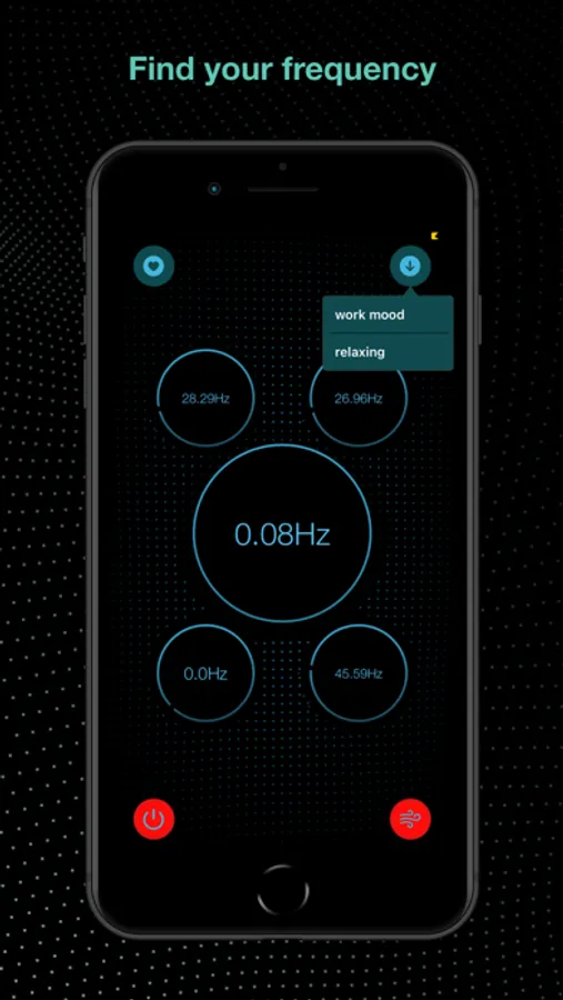 Experiment with binaural beats using 5 tone generators, toggle sea / rain noise.