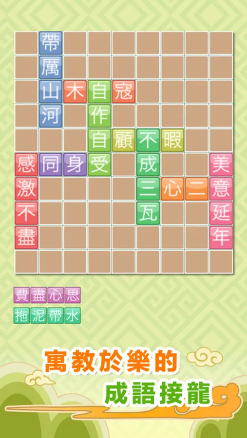 結合填字與接龍玩法,超過上百關卡,簡單容易上手!