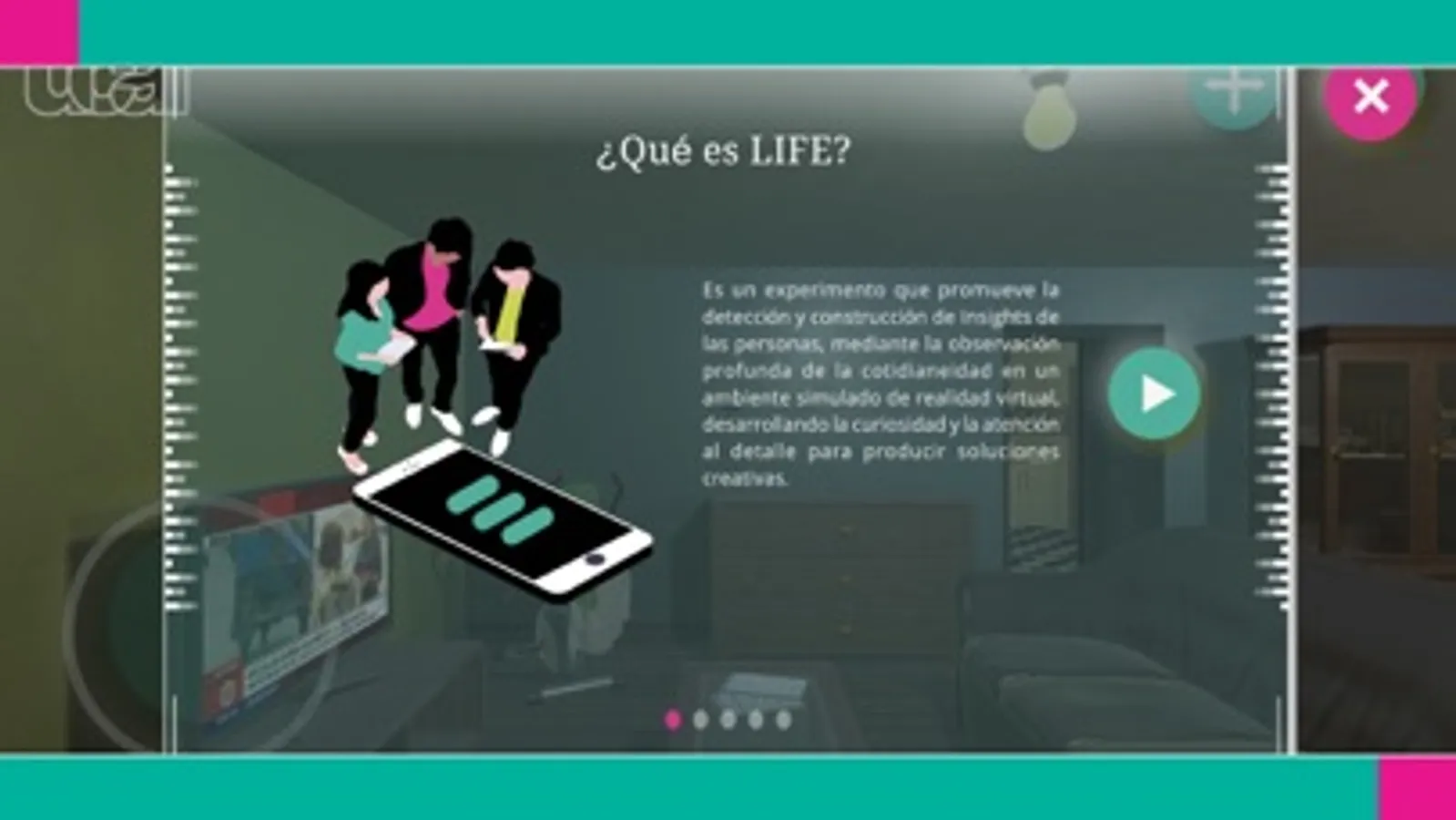 Muévete por la sala, el comedor, las escaleras, y la cocina. Observa, busca e interactúa con algunos objetos que contienen textos y datos ocultos. Encuentra necesidades profundas, significados, creencias, motivaciones, frustraciones y conflictos de las personas que viven en la casa para luego reflexionar con tu equipo de trabajo.