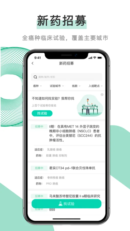 【招募活动】汇集国内新药临床试验,提供免费用药、前沿新药的治疗机会,更有专业人员为您在线匹配试验方案;