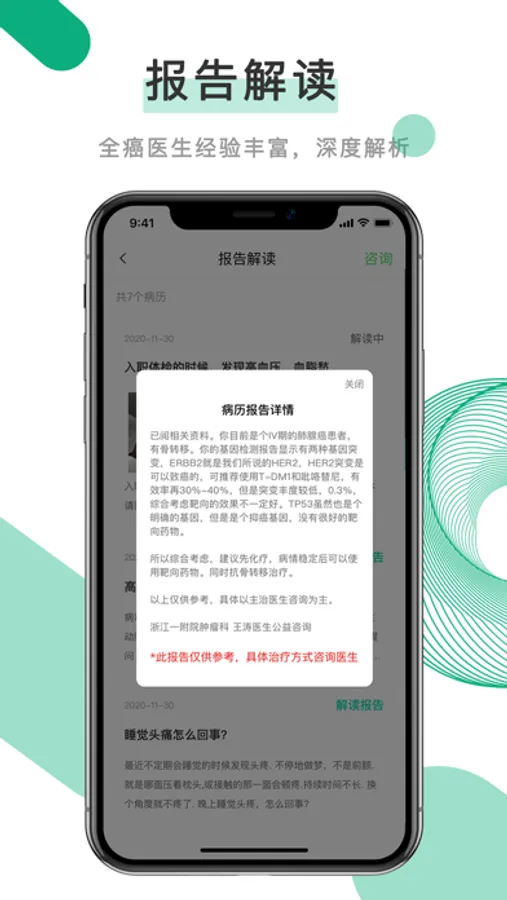 【报告解读】不管是复查化验报告、影像数据,亦或是基因检测报告,都有专业医生为您解读;