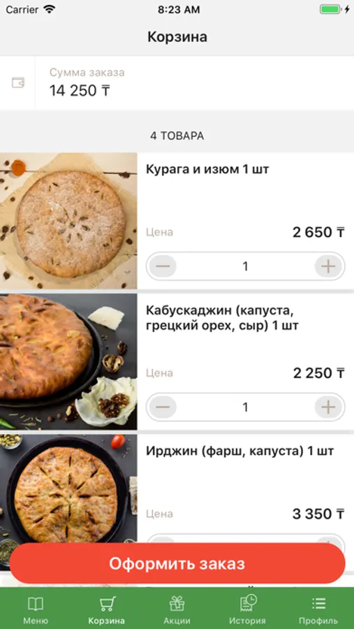 Приложение пекарни/кулинарии EDAMARKET для заказа готовой еды на доставку или самовывоз.