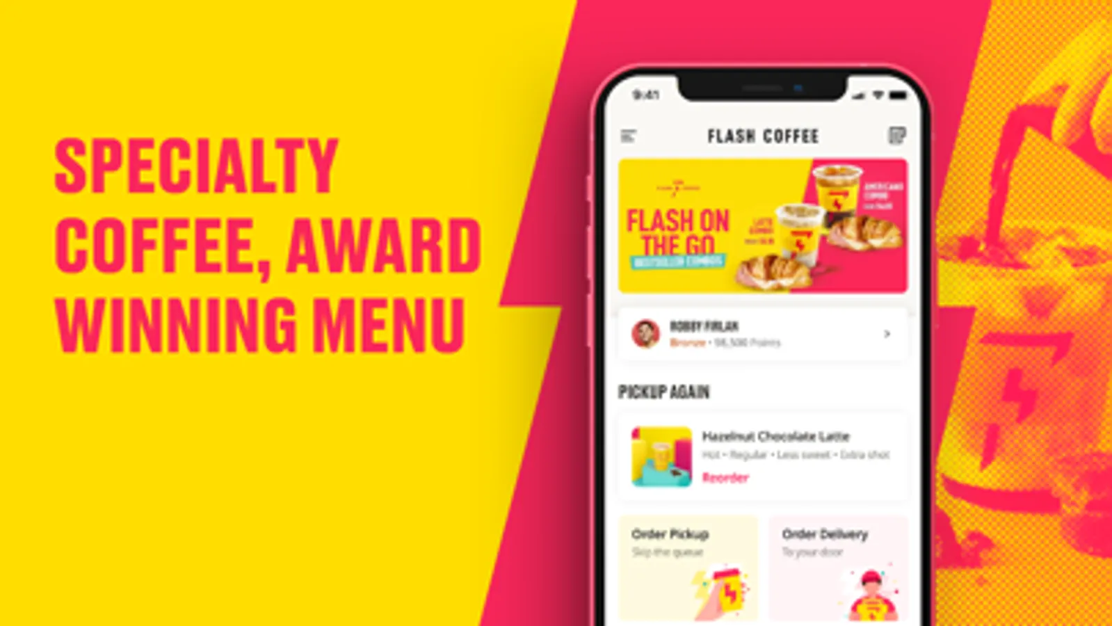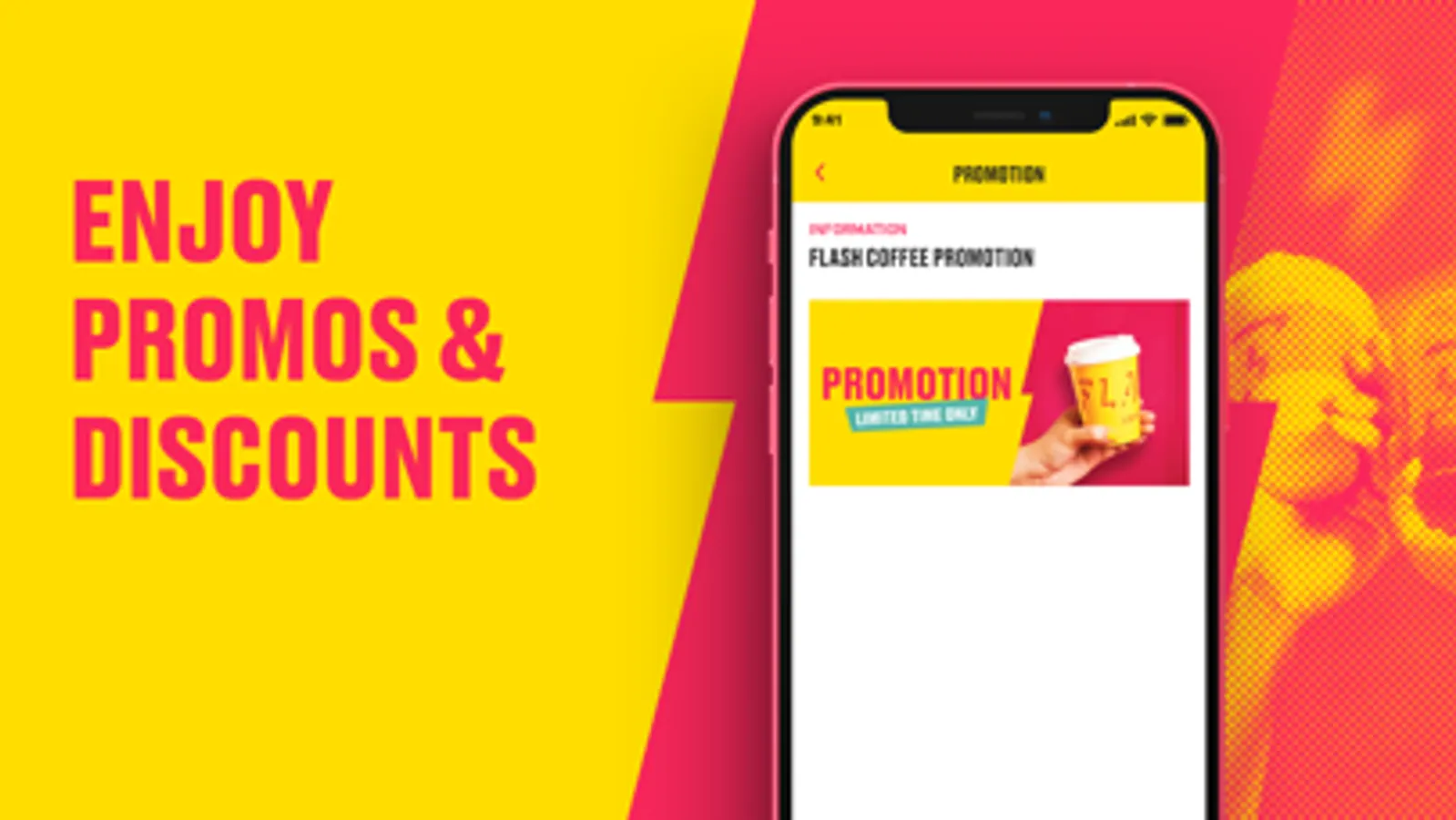 Download Flash Coffee app to order your coffee on-the-go and pick it up at one of our iconic yellow stores or have it delivered directly to your doorstep. Get access to promotions, instant cashback on every purchase and loyalty rewards.