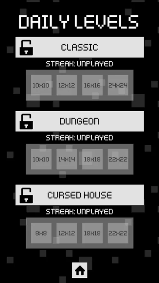 The mazes are divided in 3 unique game modes. In Classic (and all other modes) you have to find the exit before your light dies. In Dungeon, you have to find the key first to unlock the exit. In Cursed House, the maze is haunted with ghosts that will steal some of your light if they touch you, but fear not, there are oil drums in the maze that will give you some light back.