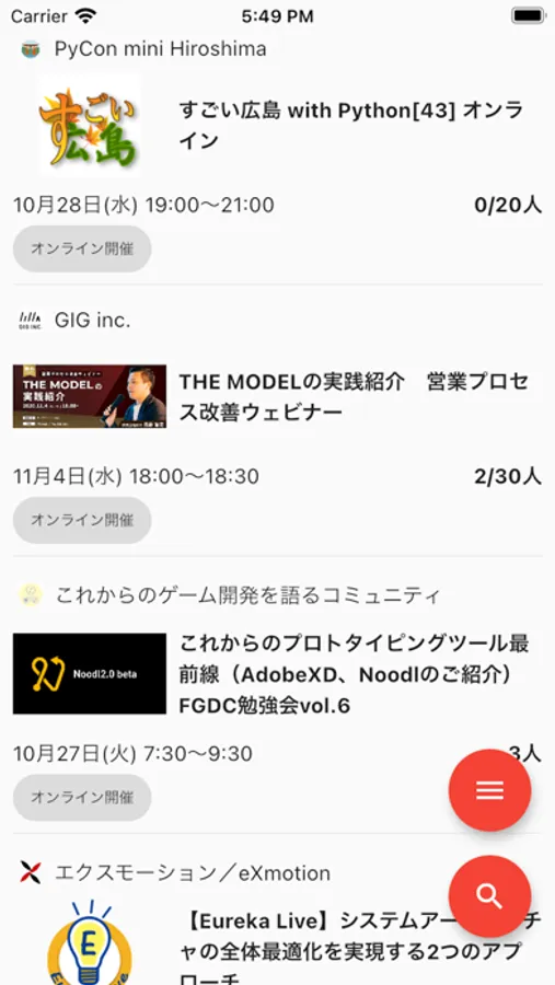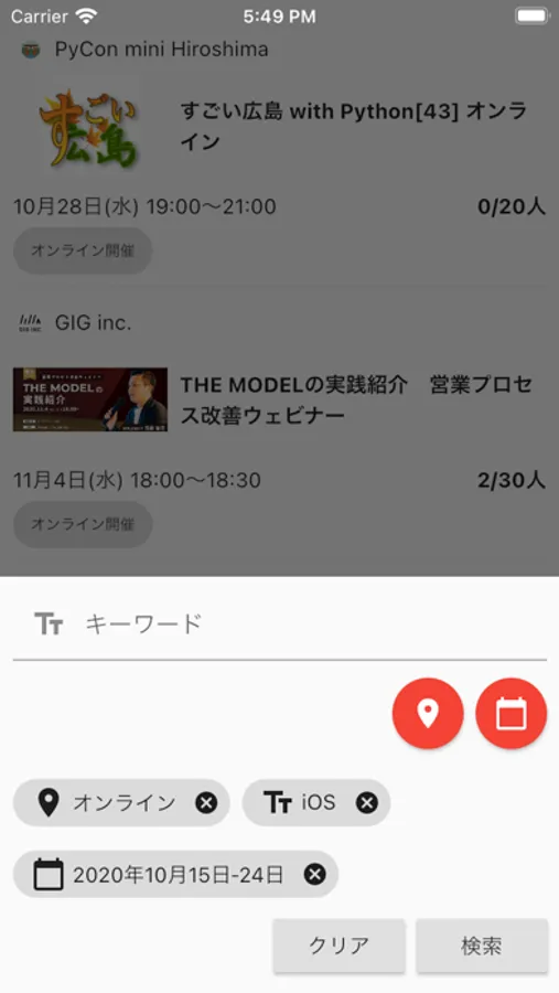 - キーワード/開催地/開催日での検索ができます