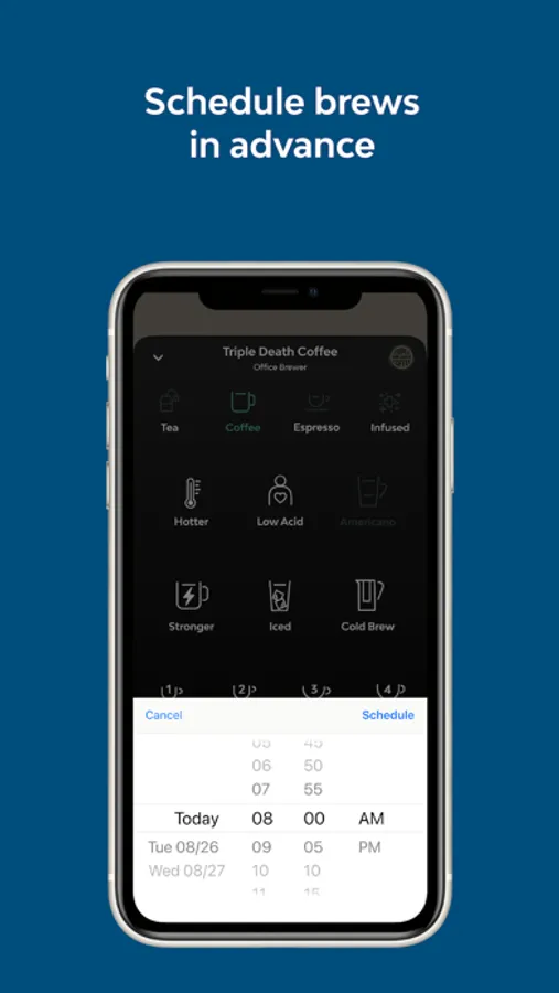 - Brew remotely, including personalizing your brew.