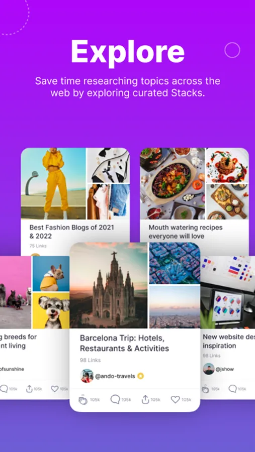Share: Don’t bombard your coworkers, friends, and family with dozens of links every time you want to coordinate or share valuable information. Instead, send them just one link — a link to a Stack that easily conveys what they need to know, gets them access to what they need, or sparks their interest in something new.