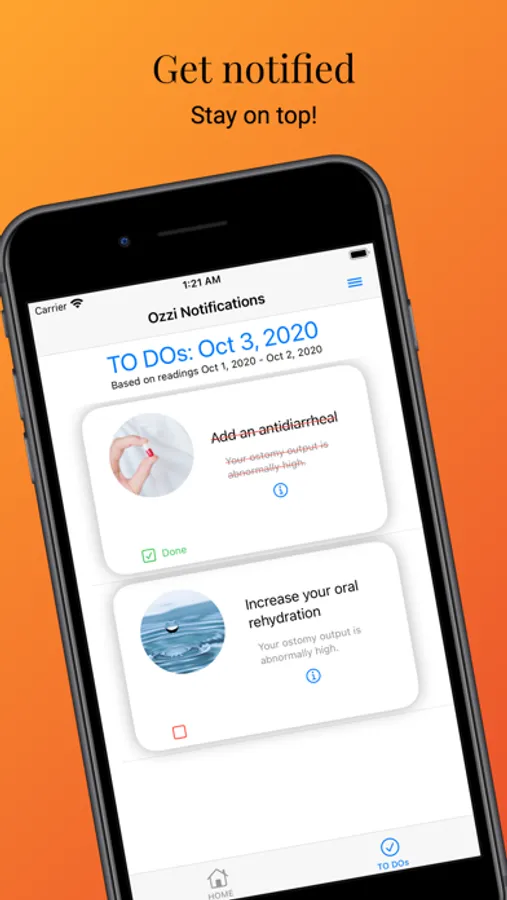 Ozzi makes it easy to track your ostomy outputs, urine outputs, and gives you personalized notifications to manage your hydration status.