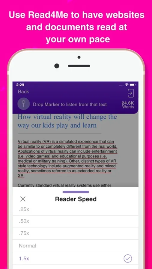 Read4Me lets you listen to webpages turning any web page into a podcast. Never read long boring web sites or documents anymore. Listen to web pages, PDF's, Take a picture of any paper or book and convert it into audio book. Share text from any application using clipboard and convert it into audio to listen to natural voice.