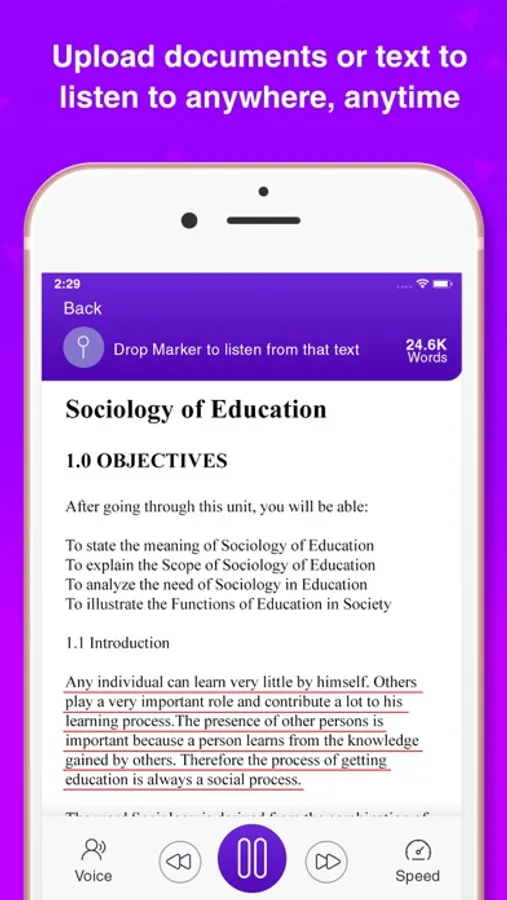Listen to web pages, PDF, Scan any book and listen to the book.