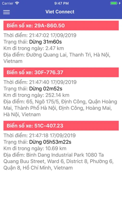 Ứng dụng Quản lý xe là ứng dụng giám sát hành trình xe theo thời gian thực. Bằng việc sử dụng công nghệ GPS, ứng dụng giúp con người có thể quản lí tốt vị trí phương tiện của mình, lịch sử hành trình, vận tốc, hướng đi của xe tại mọi thời điểm.