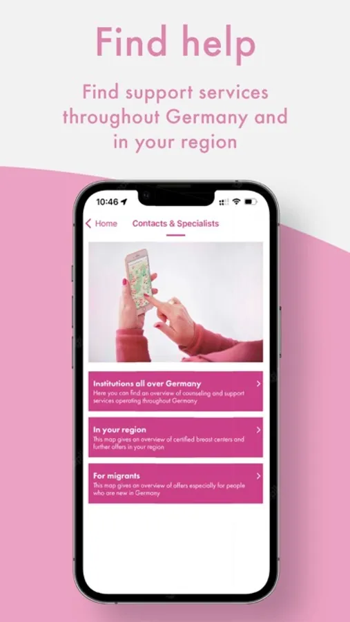 - contacts and specialists (breast centers, offices for migration and integration, information centers)
