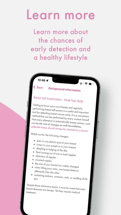 - unique app in different languages on the subject of early breast cancer detection for ALL women