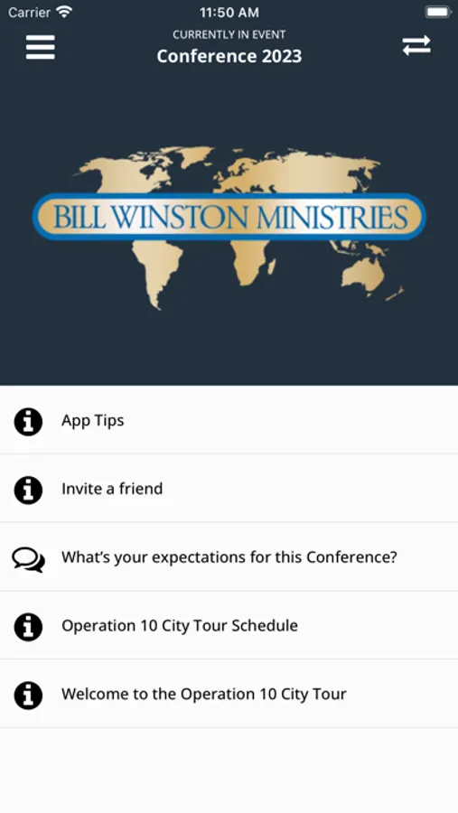 Bill Winston Ministries Events is an event app for conferences and events to stay connected with all you need to know. Access agendas, speaker bios, and other relevant information about an event. Interact through live polling, interactive surveys, live Q&A and various networking activities. Stay connected with push notifications and never miss a thing! Let the Bill Winston Ministries Events app guide you through the entire event experience.