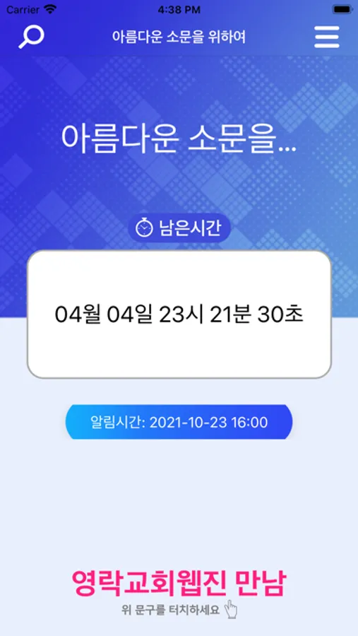 매회 예배까지 남은 시간을 안내드립니다.