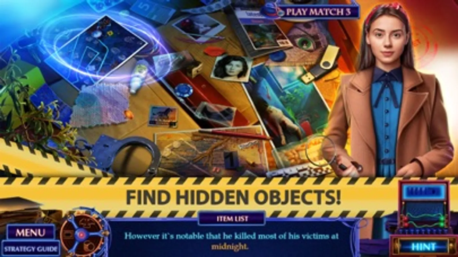 This fascinating story is full of different games, highlights hidden pictures and much more so all you have to do is go through all of it! Collect coins to buy more items for your investigation!