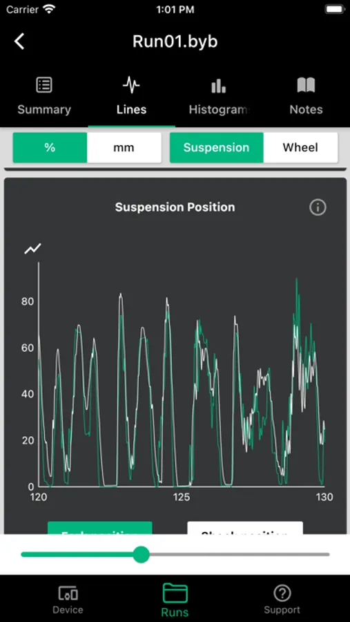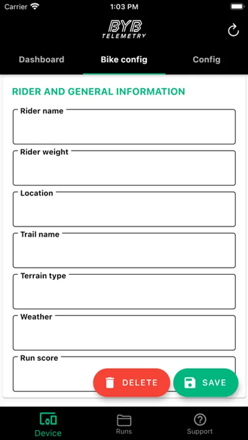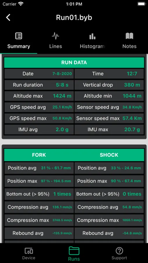 BYB Telemetry detects the motion of your suspension, the brakes usage, the speed and other dynamic parameters while riding.