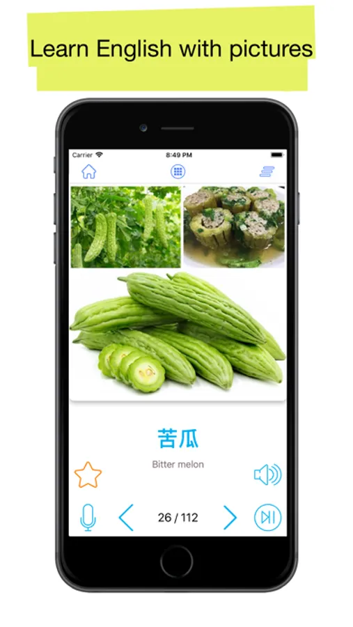 - The application provide you learning so you can try to learn vocabulary by seeing the images and combine with text, and the meaning and examples.