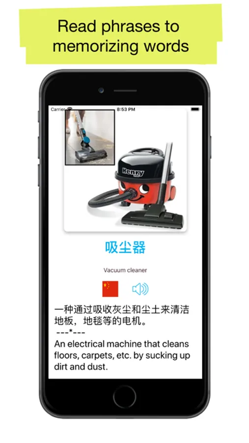 Use most effective memory technique to build your Vocabulary skills. "50.000 Chinese " app is the best way to improve your language skills by answering Test and Listening task questions.