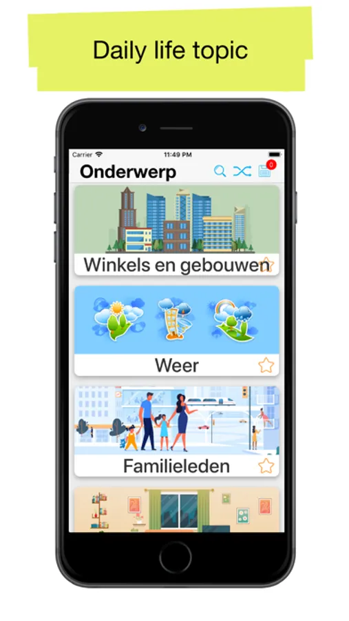 "50.000 Dutch " app is perfect for Beginner, Pre-Intermediate , Intermediate and Upper-Intermediate levels. Start with basic words and topics, and Learn new words daily! Review learned words and topics with flashcard, test and listening tasks features.