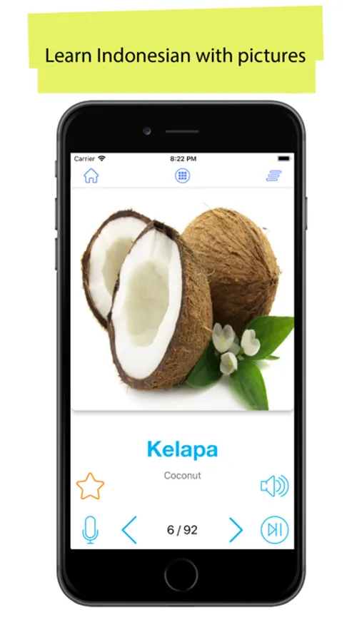 "50.000 Indonesian " app is perfect for Beginner, Pre-Intermediate , Intermediate and Upper-Intermediate levels. Start with basic words and topics, and Learn new words daily! Review learned words and topics with flashcard, test and listening tasks features.