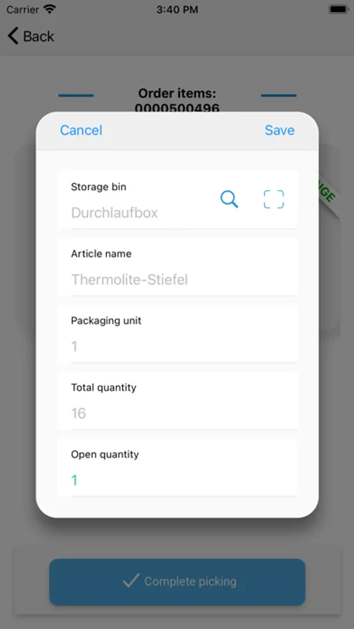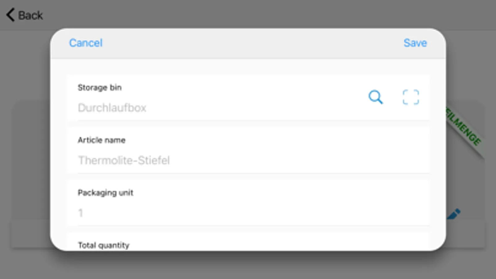 - Storage location search by scanning the article or a batch
