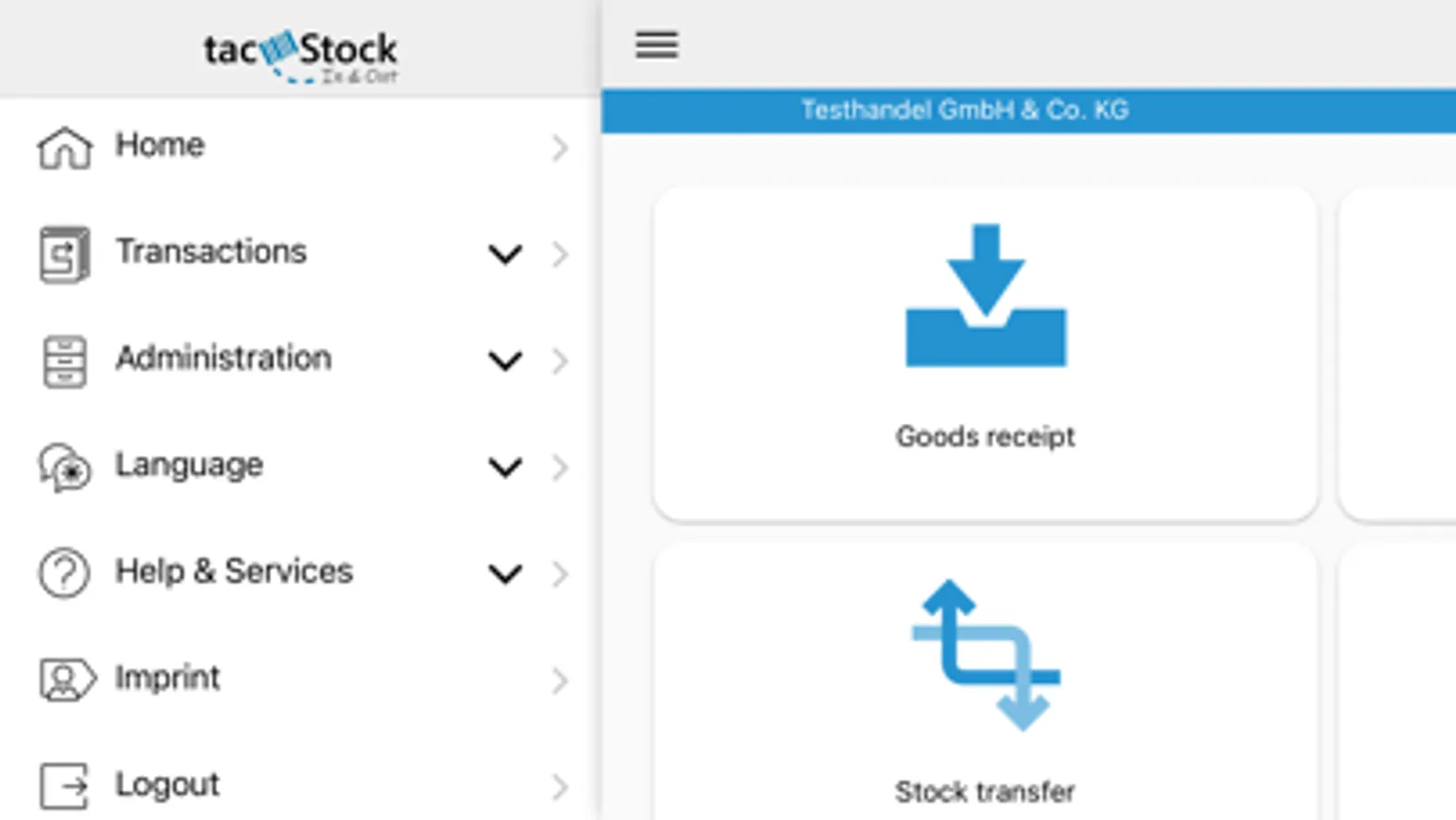 tacStock is an application from tacoss.eMOBILE for mobile access to selected data from tacoss.eTRADE via tablets and smartphones. This mobile application supports you in your storage bin management. With this app you perform efficiently and transparently necessary tasks in the warehouse in goods receipt, goods issue, and inventory. A wide variety of functionalities from picking to stock transfer, repackaging, article control, storage bin search, and check can be used in an uncomplicated way on a mobile device. By instantly updating changes in tacoss.eTRADE, you achieve powerful warehouse management and internal transparency.