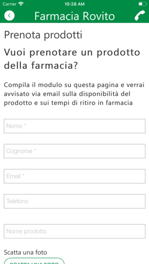 - Richiesta e prenotazione prodotti, anche mediante l'invio di immagini